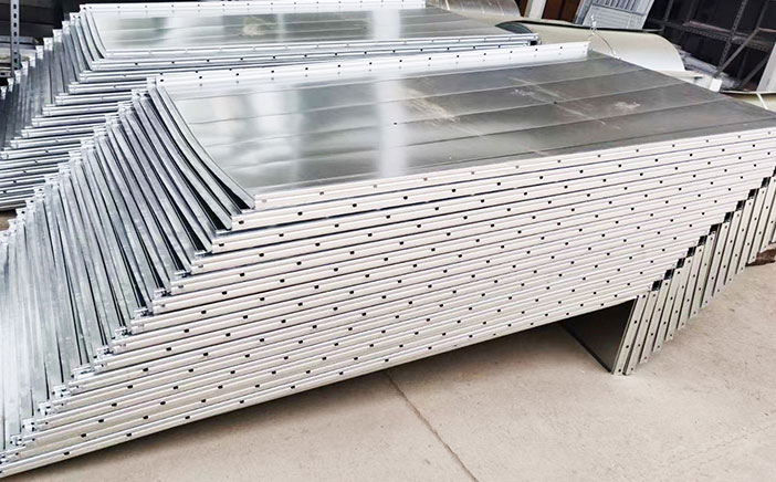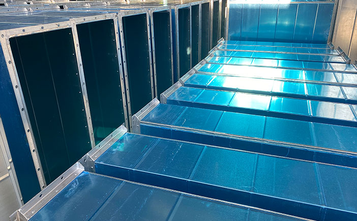 主要完成共板法兰/角铁法兰或“C”型法兰风管的成型,日加工能力600-2000㎡。生产时,只需输入要加工风管的尺寸,生产线可自 动完成开卷、校平、压筋、冲角、(冲孔)、剪切、高速联合咬口、共板法兰成型/角钢法兰成型/“C”型法兰成型、伺服折方成型。