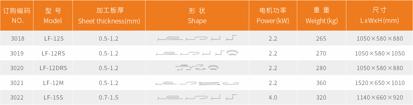 1、一机多能, 完成联合咬口、单平咬口、立咬口、C型插条和方弯头咬口;