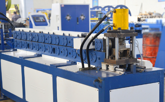 以热带钢为原料自动生产出通风管道所需角铁法兰,同时完成法兰上的螺栓孔及铆钉孔,还可完成风管角铁吊架,生产时只需输入风管尺寸及数量即可,班产量大于1000米,极大提高了效率及准确性,并减少了材料的浪费。