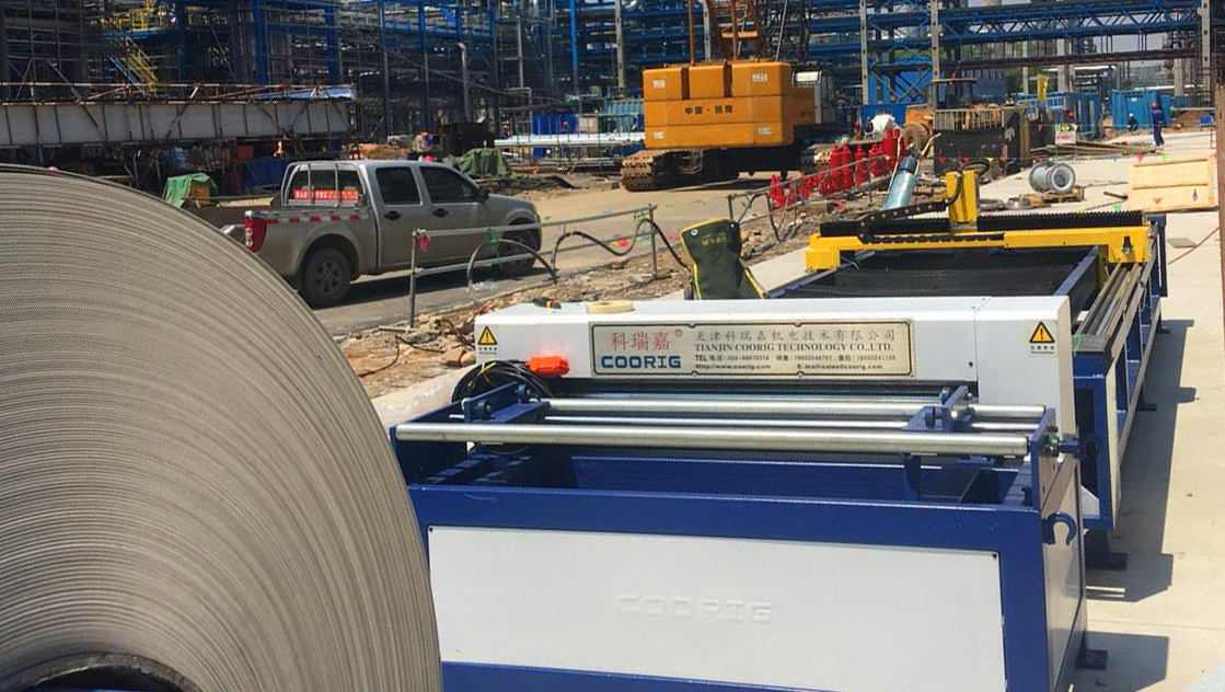 可以加工镀锌板、镀铝锌板、铝板,主要应用于石化工程、中央空调等管道防腐保温外金属管的生产,结合本公司的全自动等离子切割机等辅助设备,可以完成保温管异形件的制作。
